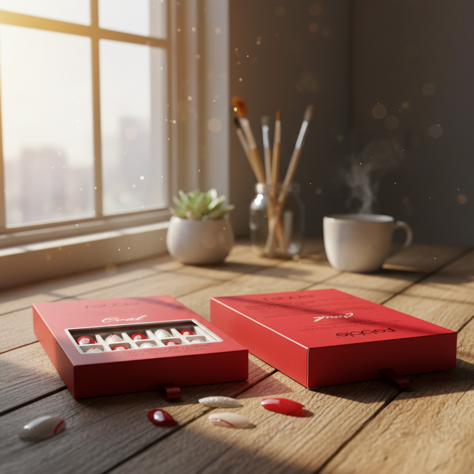 Turn heads with the Febble Classic Red with Gold Accent Press-On Nails, a bold and glamorous 24-piece oval nail set designed for confident, elegant style. Featuring a rich classic red base, soft nude tones, and shimmering glitter accents with stylish wave detailing, this set delivers a high-end salon look in minutes.