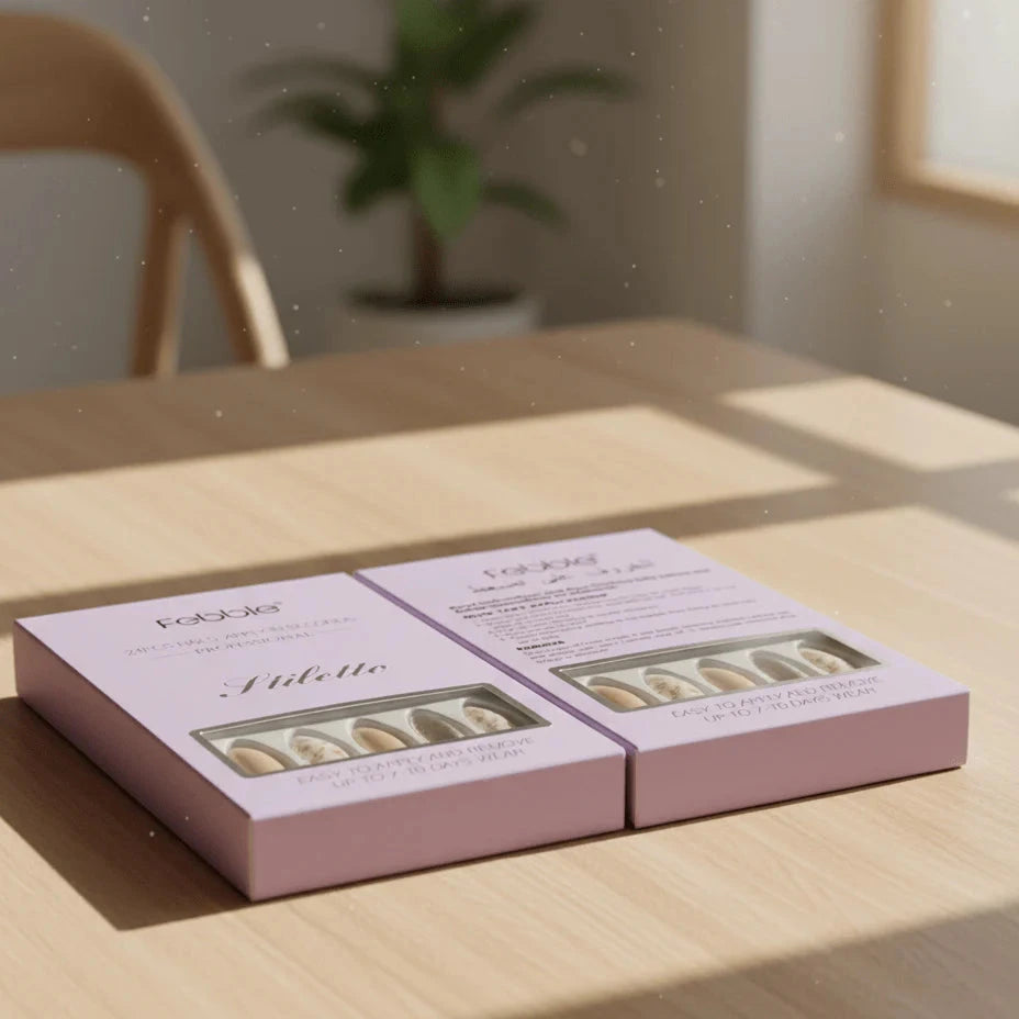 Upgrade your manicure instantly with the Febble Nude Floral Gold Mix Press-On Nails, a premium 24-piece stiletto nail set designed for a luxurious, feminine, and elegant look. This stunning collection blends soft nude tones, delicate floral artwork, and sparkling gold glitter accent nails to deliver a salon-quality finish at home.